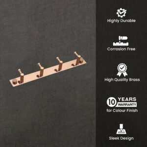 5-Pin Brass Hook Rail – Rose Gold Finish | LBA 1003