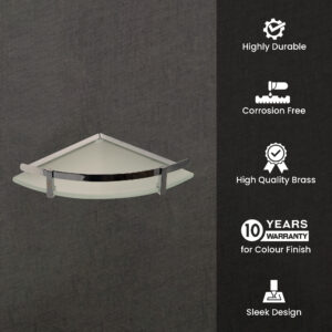 Wall Mount Corner Glass Shelf with Chrome Guard | LGS 3001