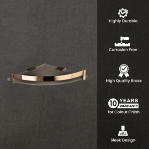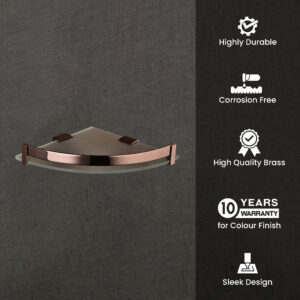 Wall Mount Corner Glass Shelf with Rose Gold Guard | LGS 4001