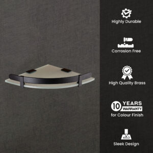 Wall Mount Corner Glass Shelf with Matte Black Guard | LGS 4003