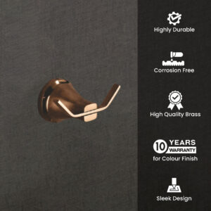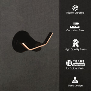 Wall Mount Brass Robe Hook | Corrosion & Wear Resistant | Black & Rose Gold Finish | LBA 3402