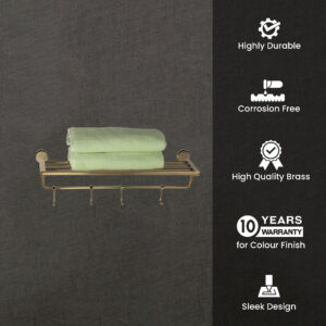 24″ Gold PVD |Towel Rack with Hooks | Durable Brass | Product Code: LBA 3211