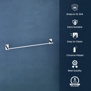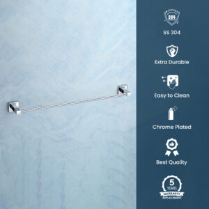Premium SS 304 Chrome Finish Towel Rod | Durable Wall Mounted Bathroom Accessory | DR-802