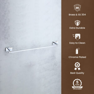 Wall Mount Towel Rod | 400 mm | 18 inch | Premium chrome finish | LBA 509