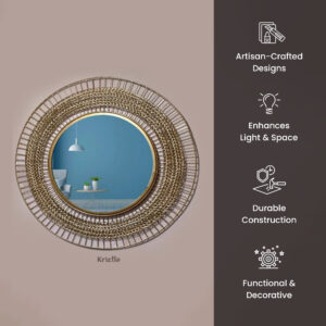 Artistic Round Wall Mirror with Intricate Woven Gold Metal Frame | 30” Statement Piece for Sophisticated Interiors | Model: LMF 111