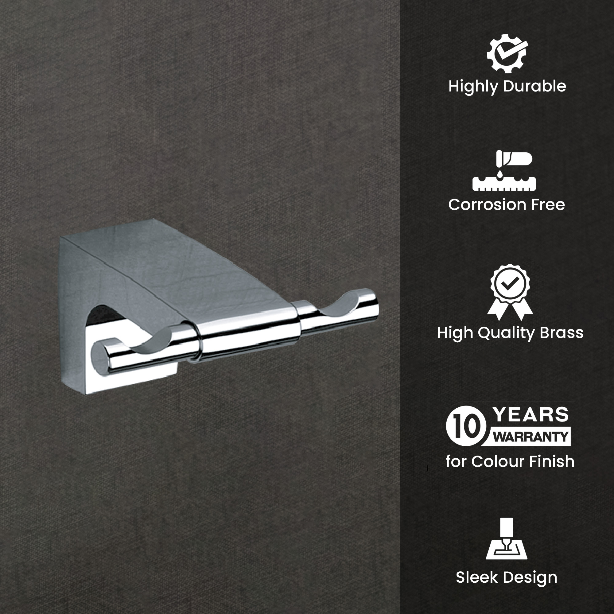 The LBA 502 is a wall-mounted double hook, perfect for towels, robes, and clothes. Its compact form and chrome finish make it an ideal choice for modern bathrooms where elegance meets functionality.