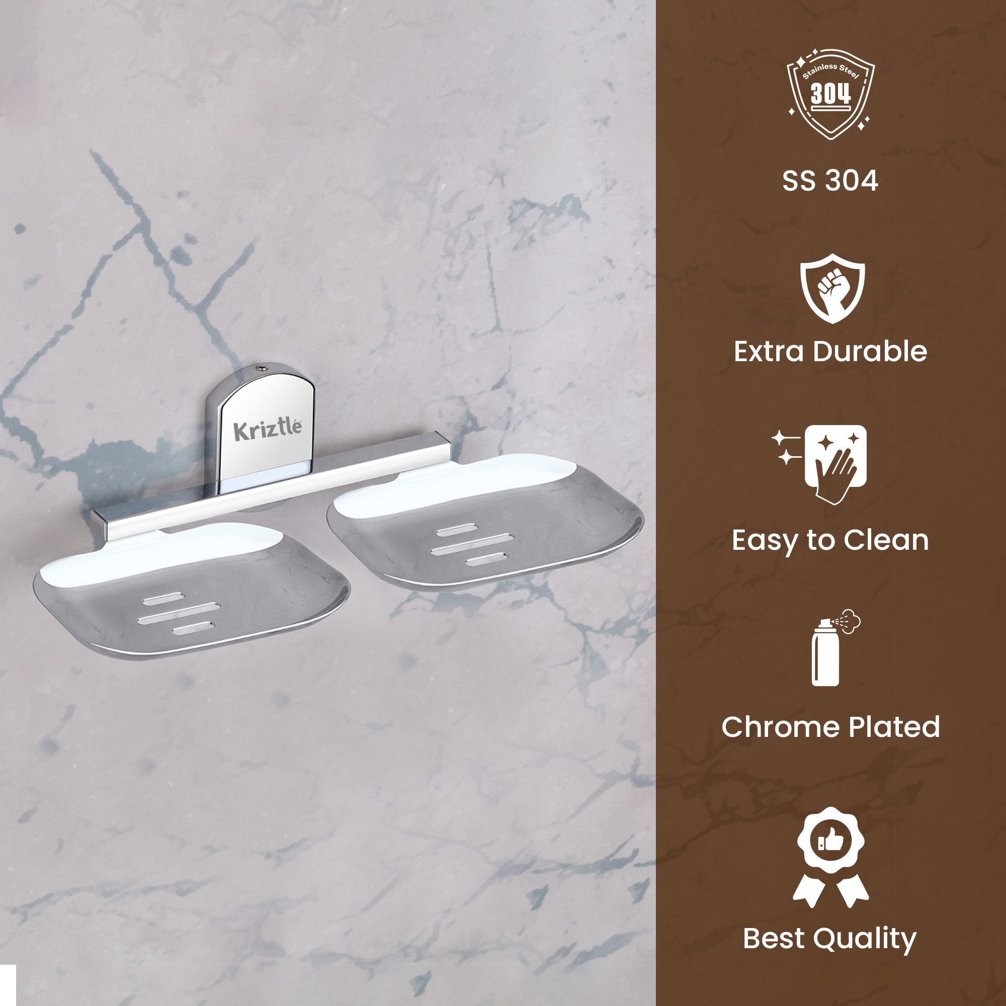 Premium SS 304 double soap dish holder with multiple finish options, designed for durability, rust resistance, and easy maintenance. Perfect for keeping soaps dry and organized in modern bathrooms.