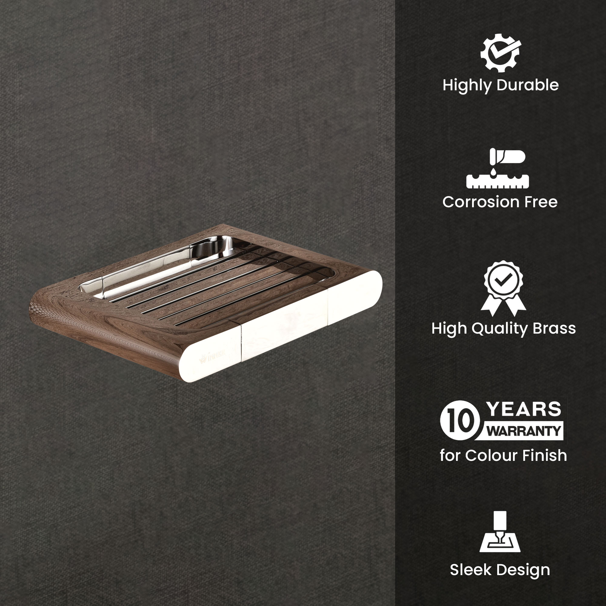 Design: Rectangular tray with slotted details to prevent water build up, keeping soap dry