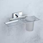 A premium wall-mounted soap dispenser made with brass, SS 304, and frosted glass, designed for elegance, durability, and convenience in modern bathrooms.