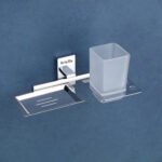 The Kriztle PR-410 Wall Mounted Soap Dispenser with Tumbler Holder combines style and functionality. Featuring a chrome-plated Brass & SS 304 body with frosted glass containers, it offers an elegant and hygienic solution for modern bathrooms.