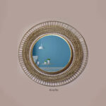 The LMF 112 decorative mirror stands out with its wreath-like silhouette featuring metal leaf accents. The rich dark tones and detailed craftwork make it a timeless piece of wall art and utility.